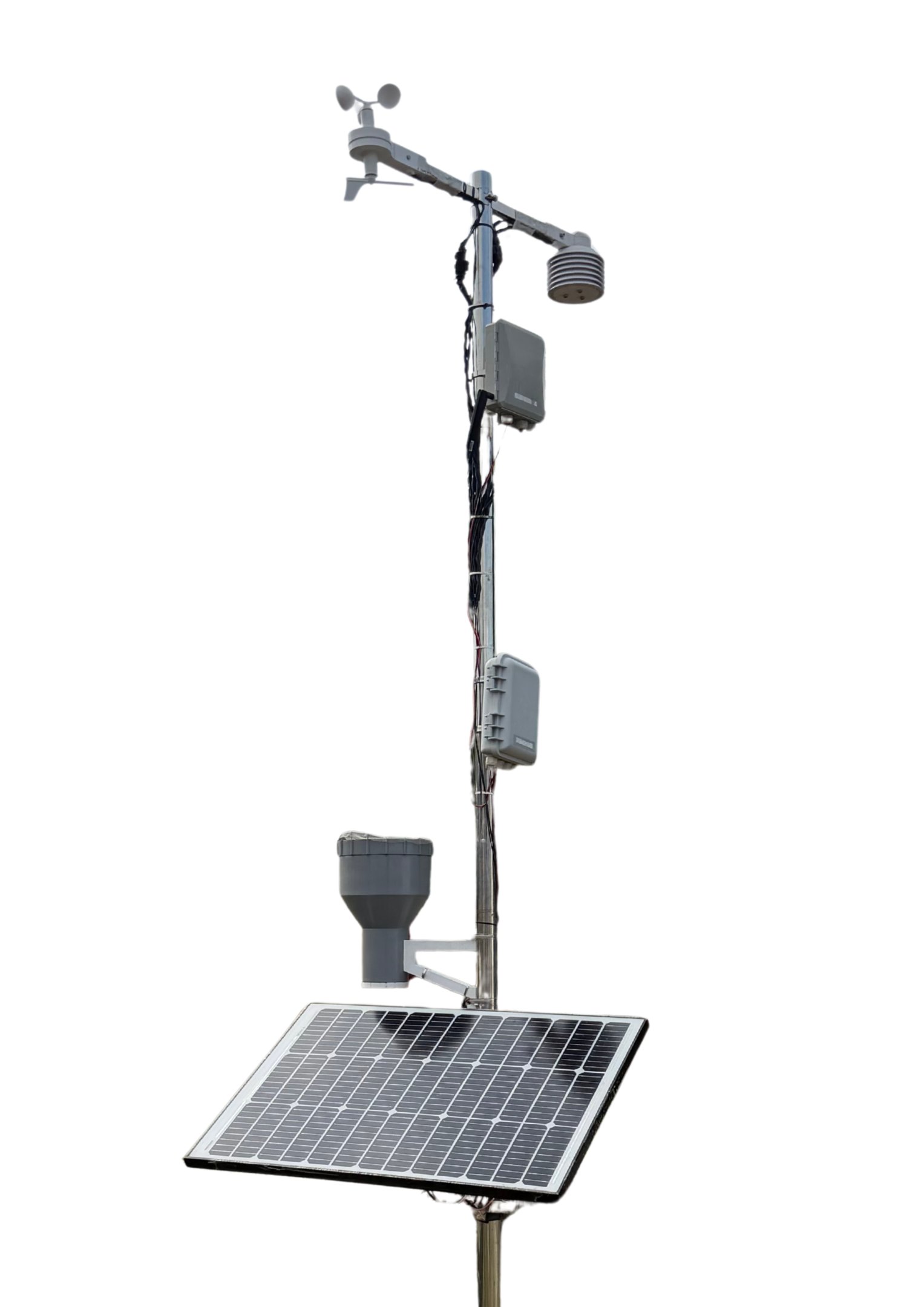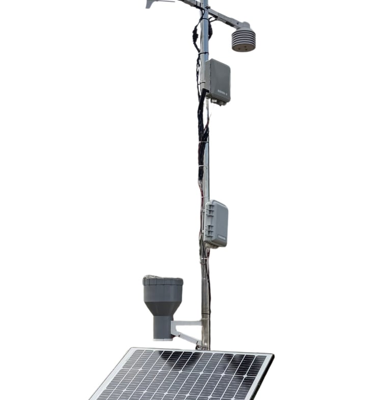 We provide a network of ground-based automatic weather stations that collect hyperlocal weather data in real-time. The station is equipped with sensors that measure nine weather parameters, a communication and control box that processes and sends the weather data to a secure server, and a solar panel with batteries for a reliable power source.