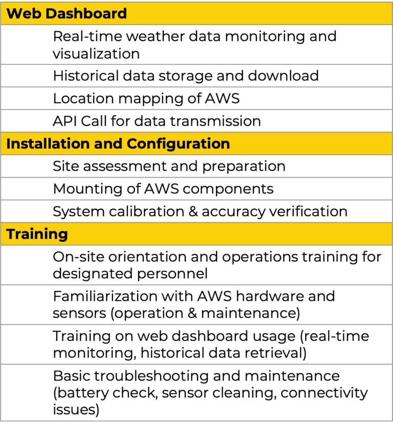 The hardware components are modular and the web dashboard can be customized based on the identified needs of each client. Software updates and upgrades like forecasting and insight generation always remain free.